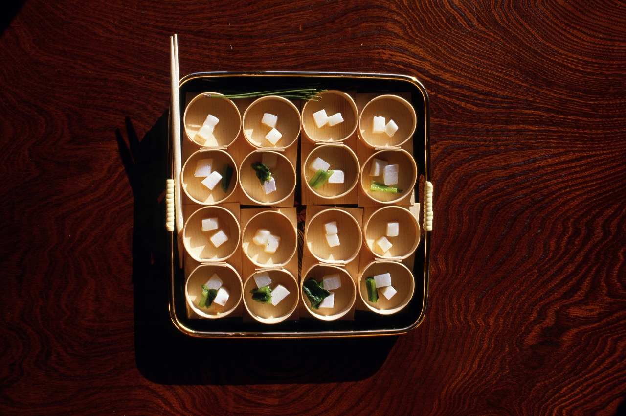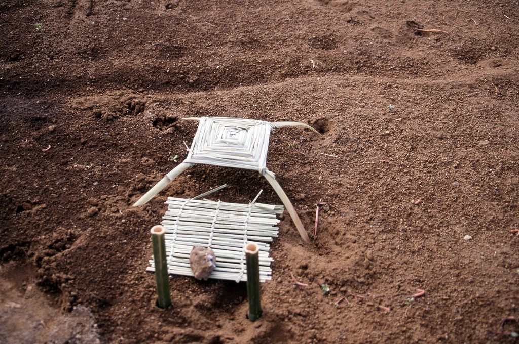 このほかの神仏には小さなお供え餅を作る。葦で小さな台を作り、半紙を置いたうえにひし形ののし餅を置いてお供えする。
