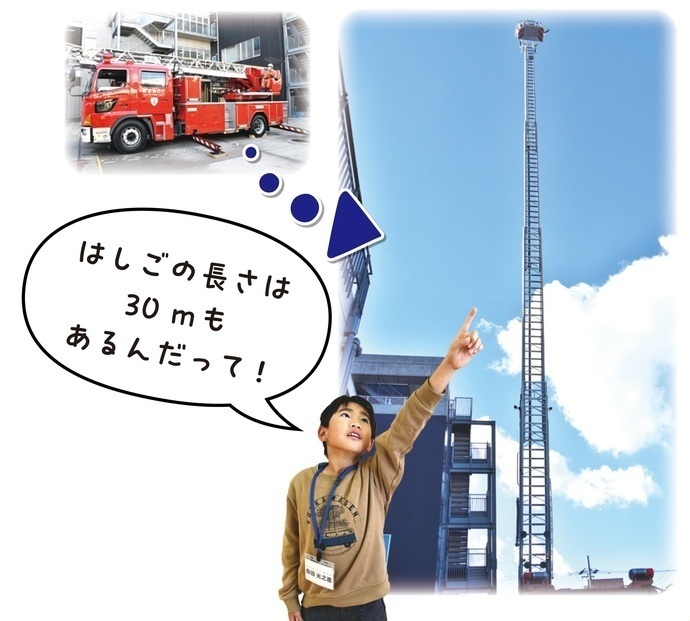 子ども広報員が金町消防署の仕事と区役所の防災の取り組みを取材し、火事や地震が発生した際の行動や備えについて学びました